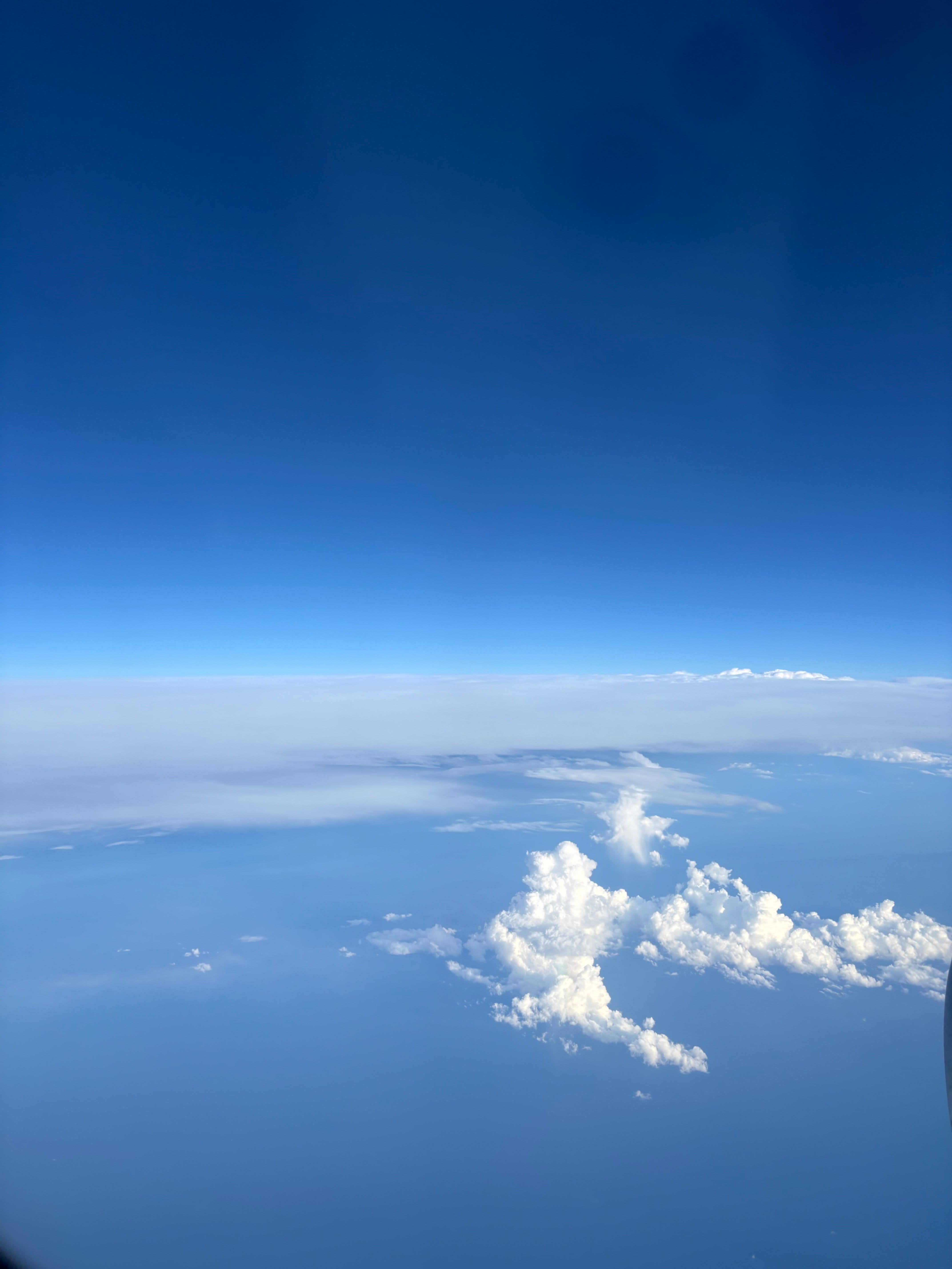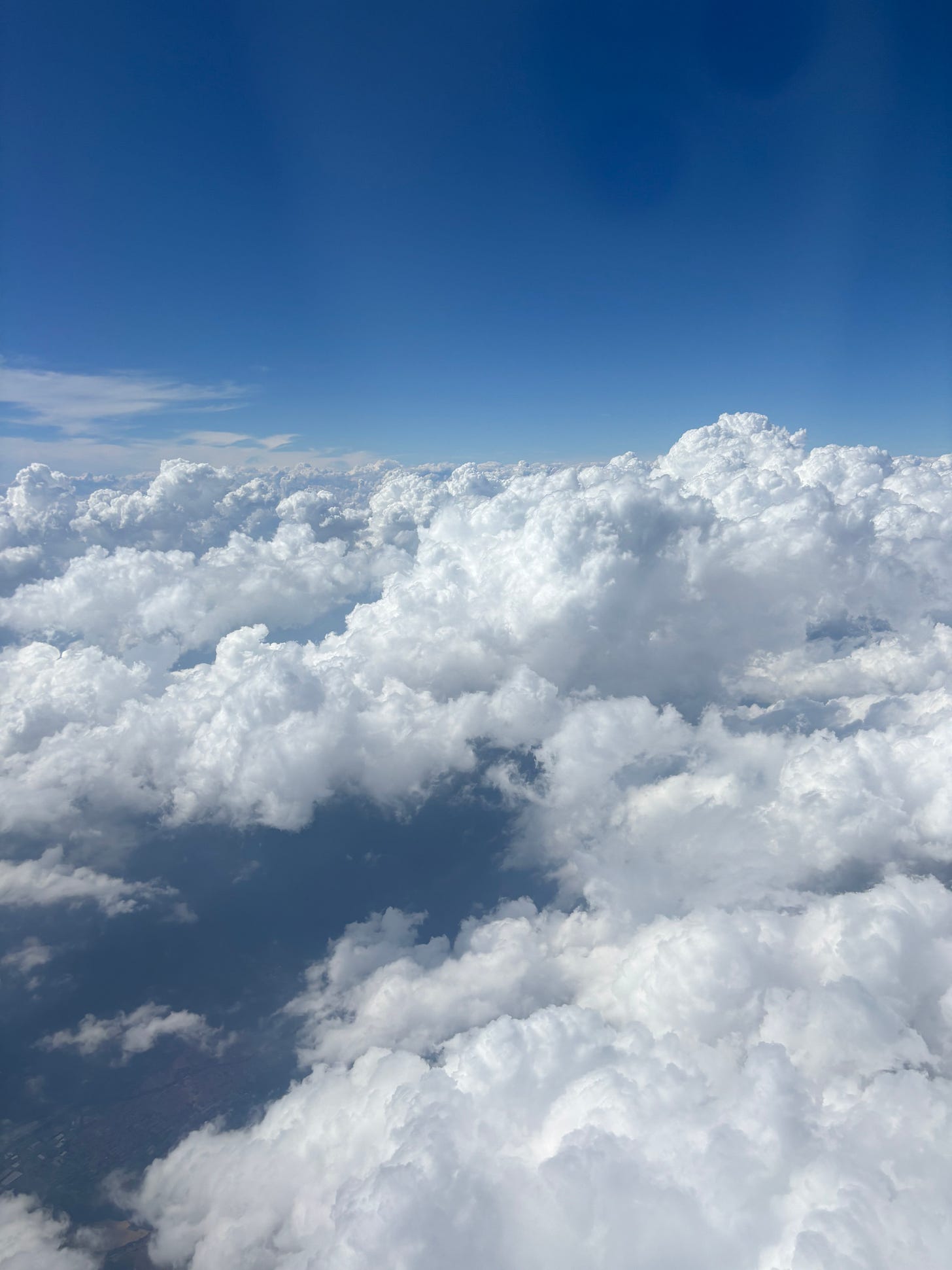 Faptul că pot privi pufoseniile astea albe atât de aproape încât dacă n-aș fi în avion și aș întinde mâna le-aș putea atinge, îmi umple sufletul de bucurie. În ciuda pericolului ce un astfel de scenariu l-ar presupune.