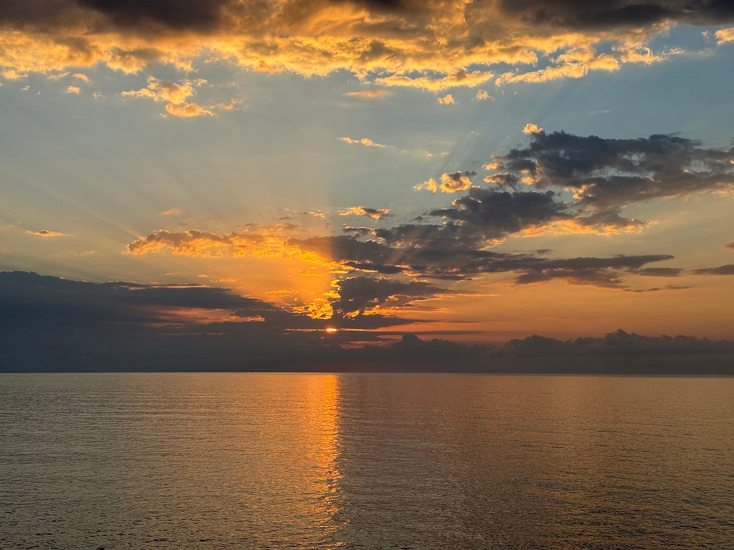 Acum o privesc parcă cu alți ochi. Admirând cum lumina răsăritului e limitată într-o parte de nori, iar în cealaltă parte are spațiu și e liberă să mângâie cerul și marea, îmi dau seama ce minunăție s-a creat prin asta in acel moment unic.